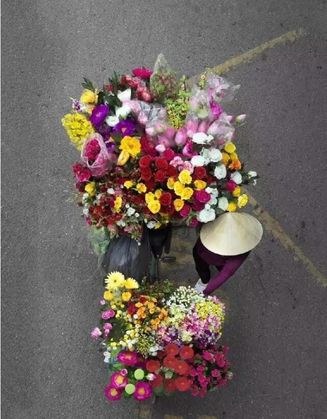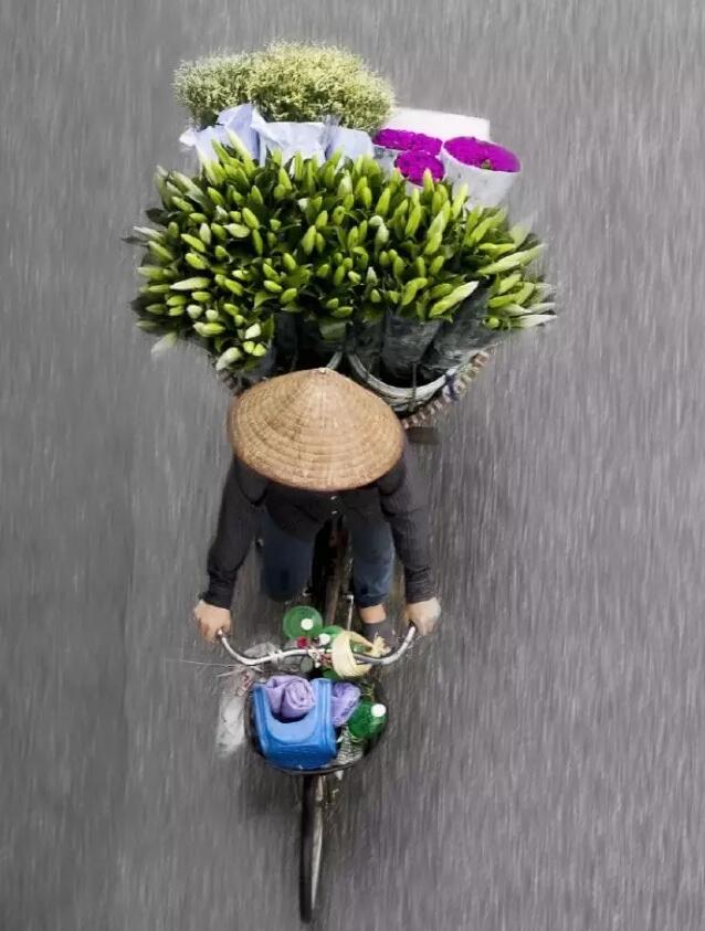 攝影師Loes Heerink在越南河內(nèi)的天橋上,看到那些趕早市的自行車商販,于是就拍下了這組很美的圖片