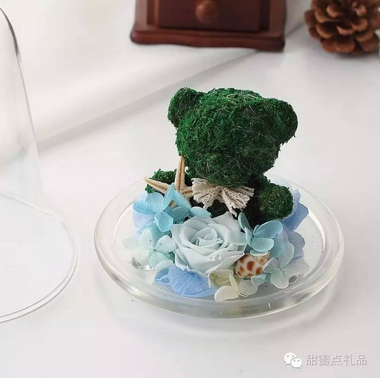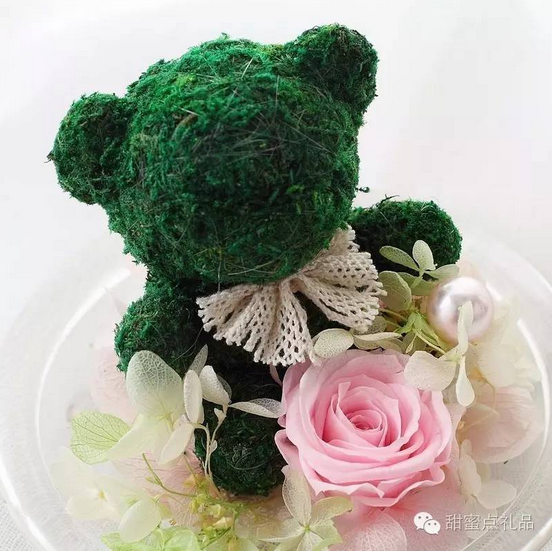 主材:1只9CM高苔蘚熊,1朵3-4CM玫瑰。