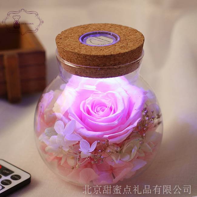 秋日傍晚,手提永生花七彩燈許愿瓶在靜謐的小路點(diǎn)亮,燈光下,愛人的臉龐也多了些許柔和,漆黑的夜空在燈光的照耀下也多了幾分神秘!